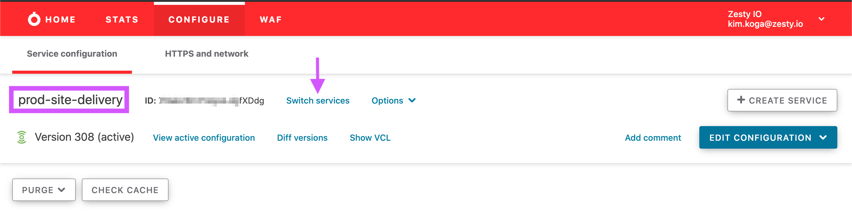 2. Then ensure you’re on prod-site-delivery, if not click Switch services and select it.