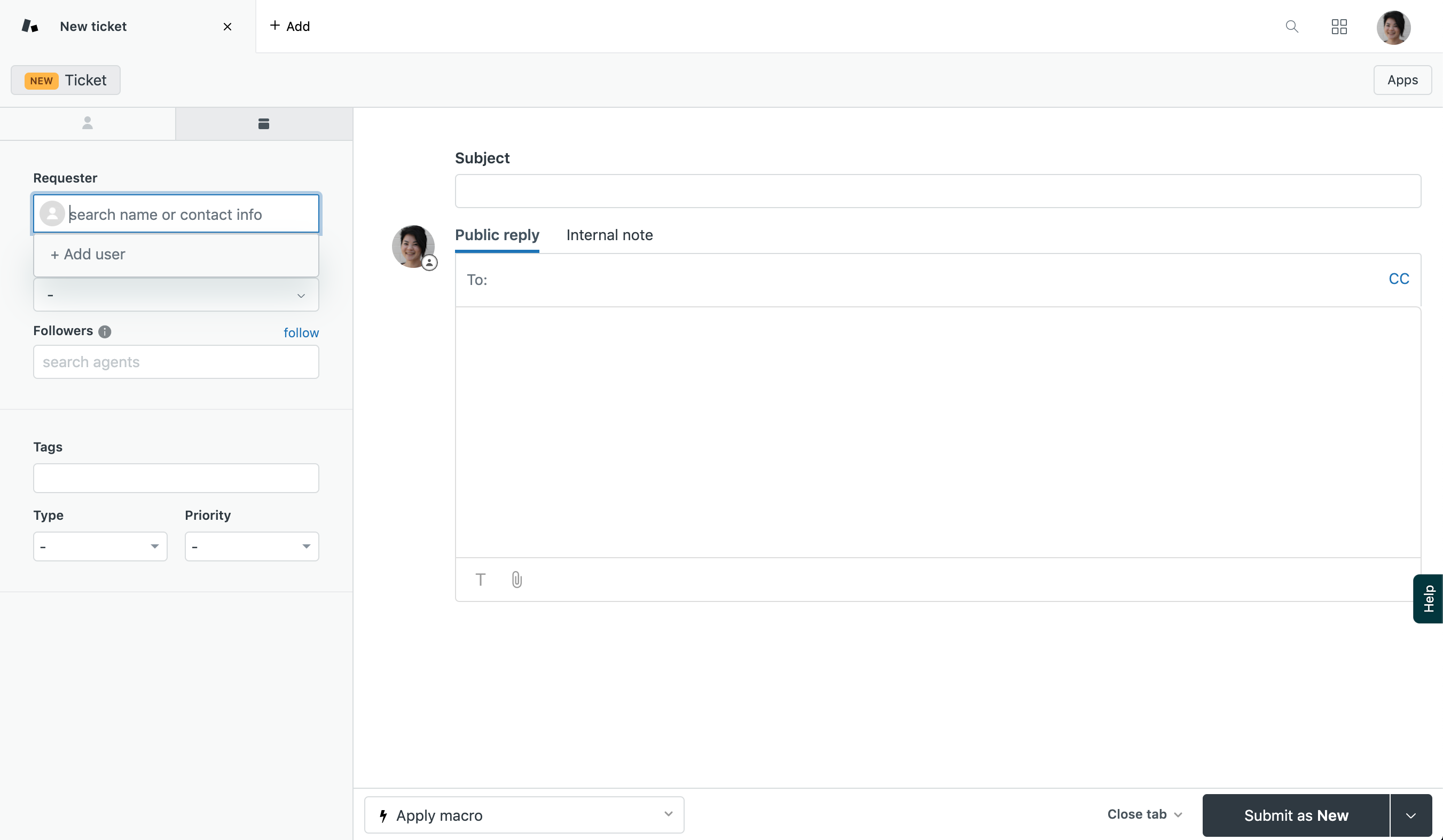 - When non-Halp/Zendesk agents create a ticket, that ticket might need reassigned to another user or have the requestor updated. This will need to be done by a Zendesk agent.